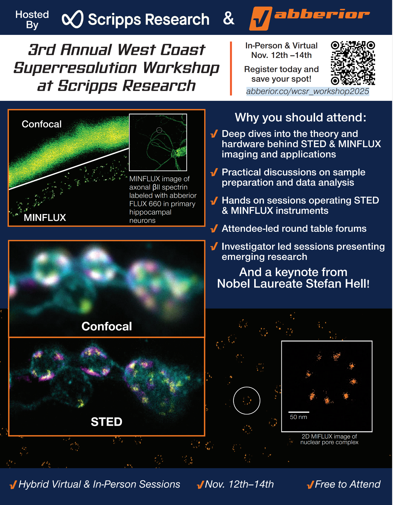 The NIF currently offers use and training on MINFLUX super-resolution microscope. The system is a dual line (560/640nm) system capable of resolving single particles to 3nm in imaging mode and 1nm in particle tracking mode. Reach out to Michelle Ocana for details and sample prep protocols.
